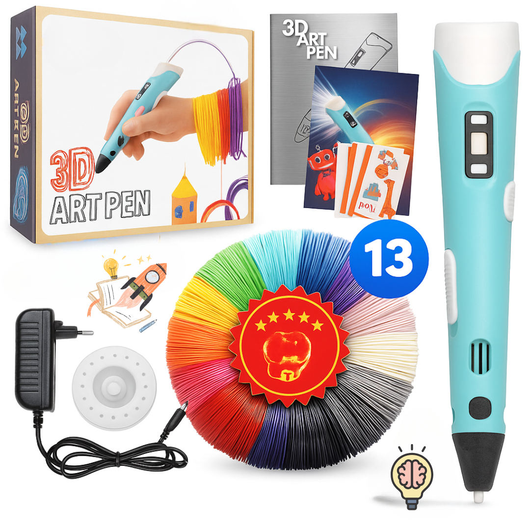 Desenha as tuas ideias em três dimensões com a nossa inovadora Caneta 3D. Os limites são teus! Cria tudo o que imaginares, desde objetos decorativos a projetos escolares ou presentes personalizados. Dá vida às tuas ideias de forma divertida e original!