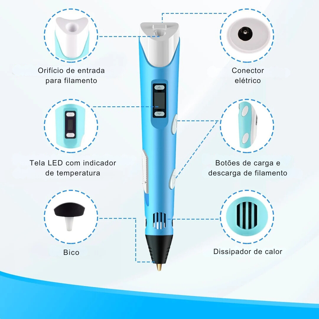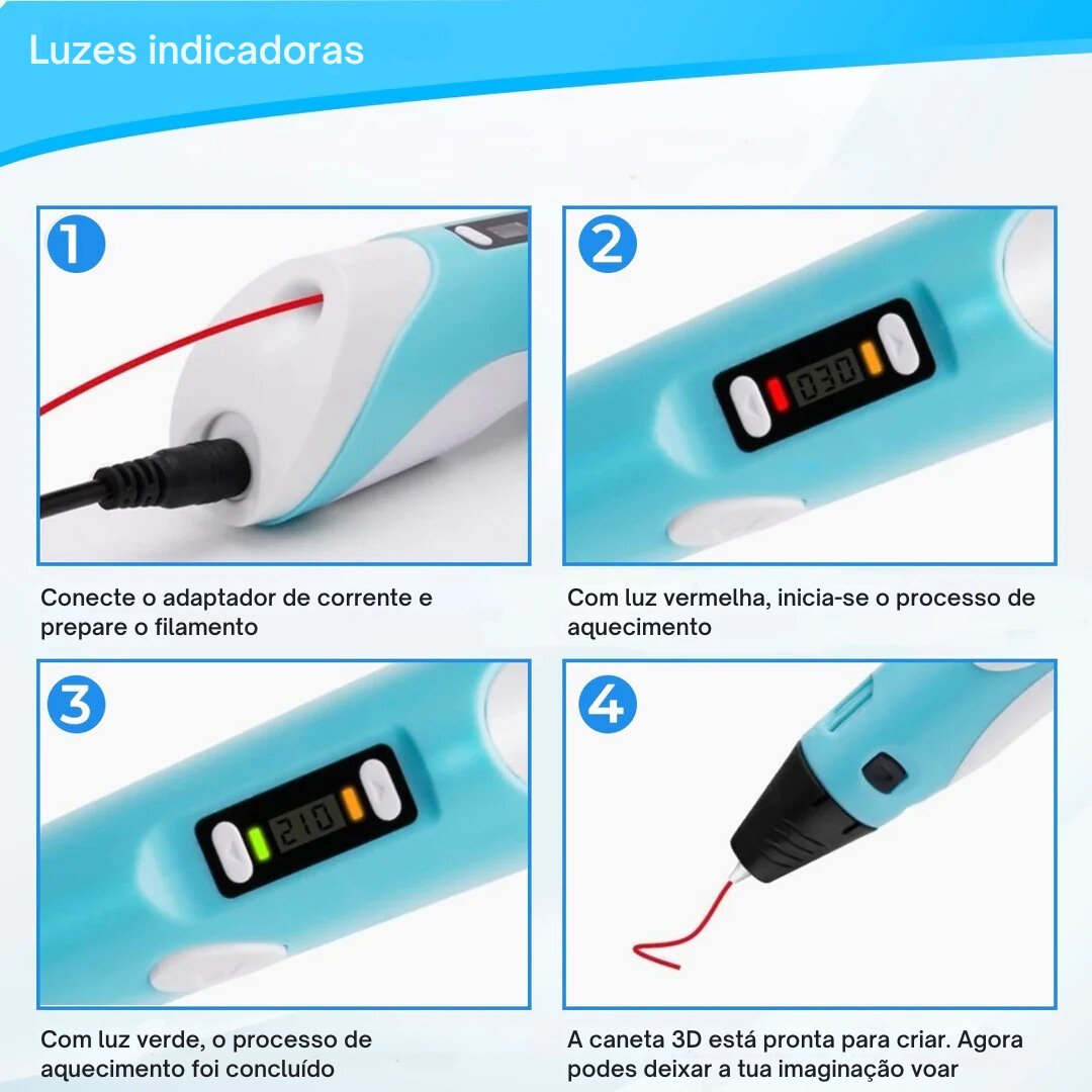 A Caneta 3D estimula o desenvolvimento da imaginação e das funções cognitivas. Desperta o inventor que há em ti!